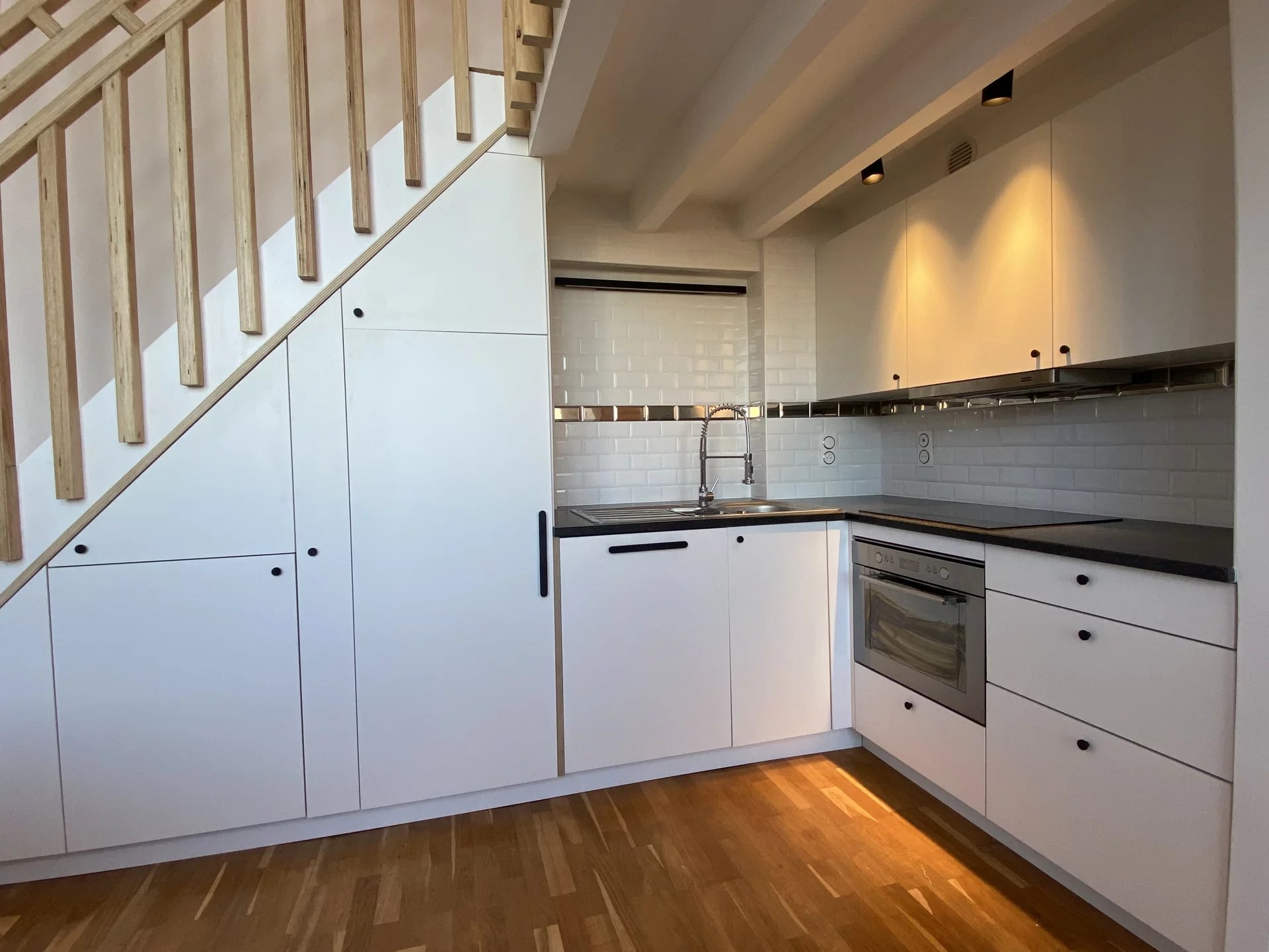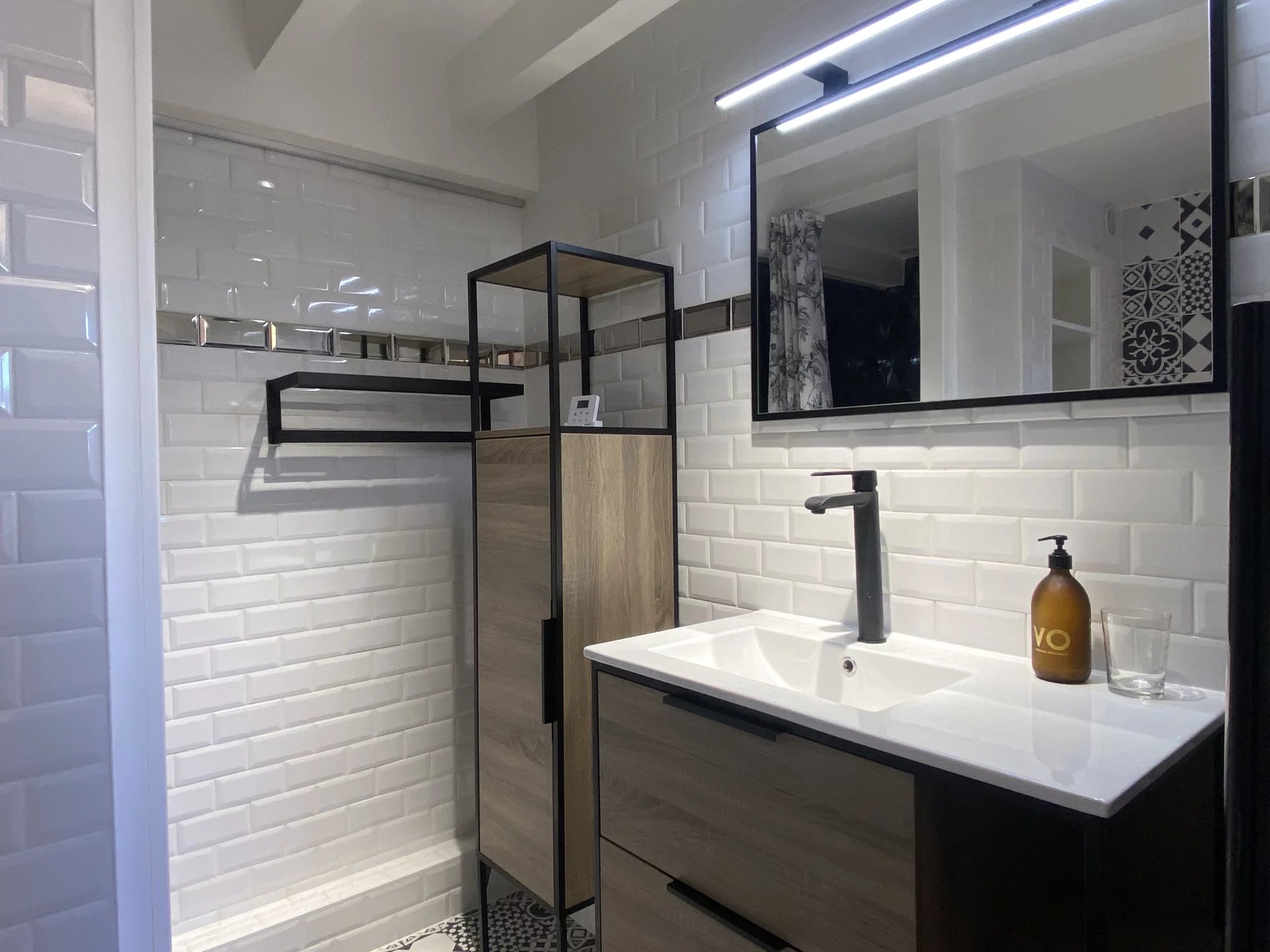Entirely redesigned and renovated, it comprises an entrance hall with an office area, a cupboard and a shower room with toilet. A fully equipped kitchen opening onto the living room with access to a 20 m² terrace. A mezzanine with a double bed and WC.