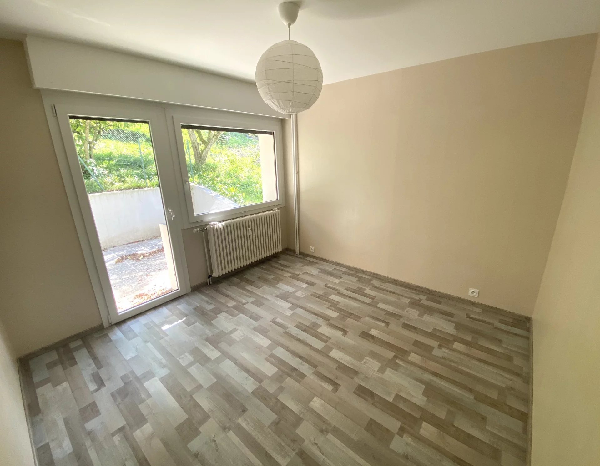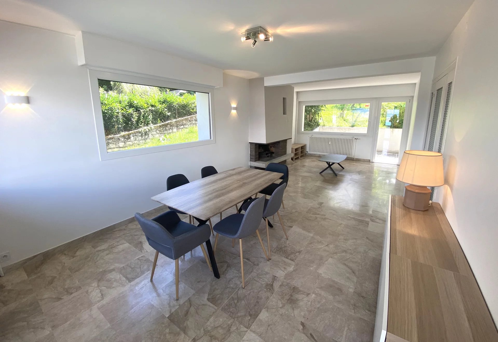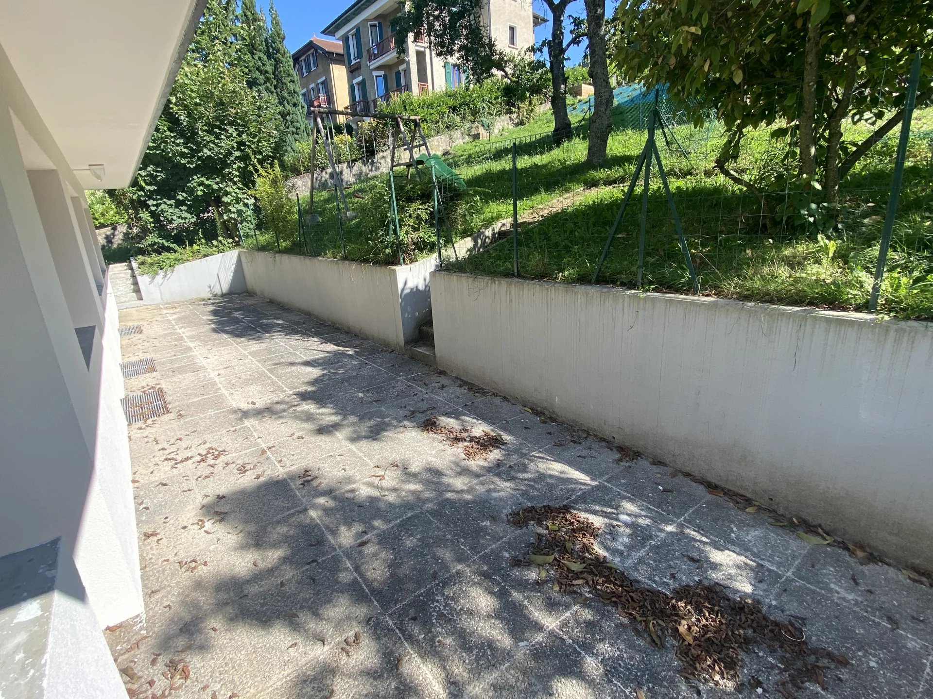 Composed of an entrance with cupboard, three bedrooms giving onto the terrace in the South, a vast living room crossing North-South and bright. A separate equipped kitchen (induction cooker, hood, dishwasher, combined microwave oven, fridge-freezer) with access to the North balcony, a shower room with washing machine and separate toilet. A private garden to the south.