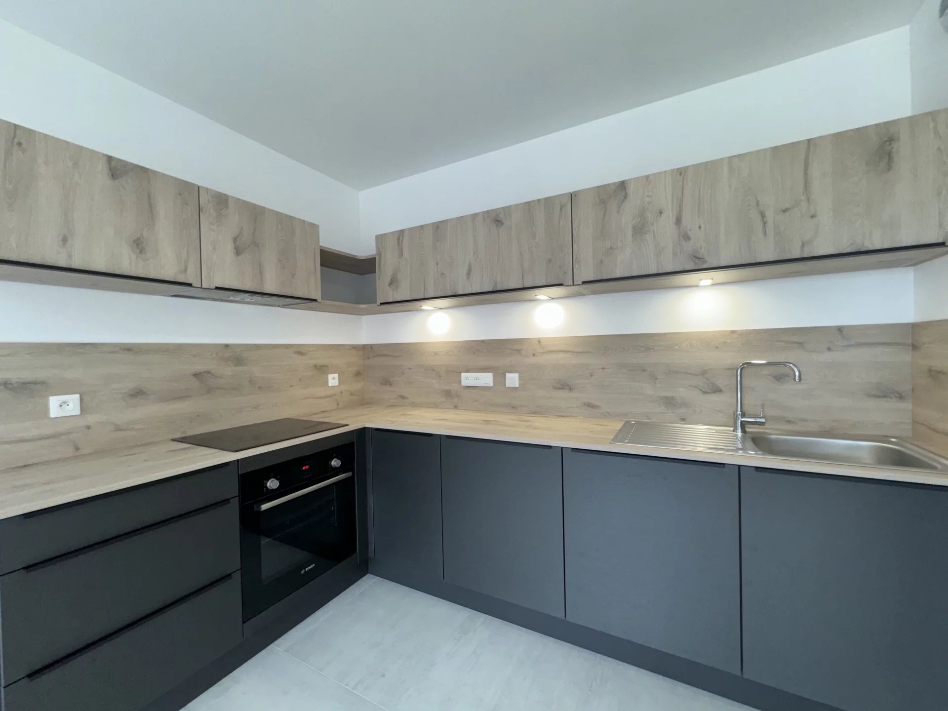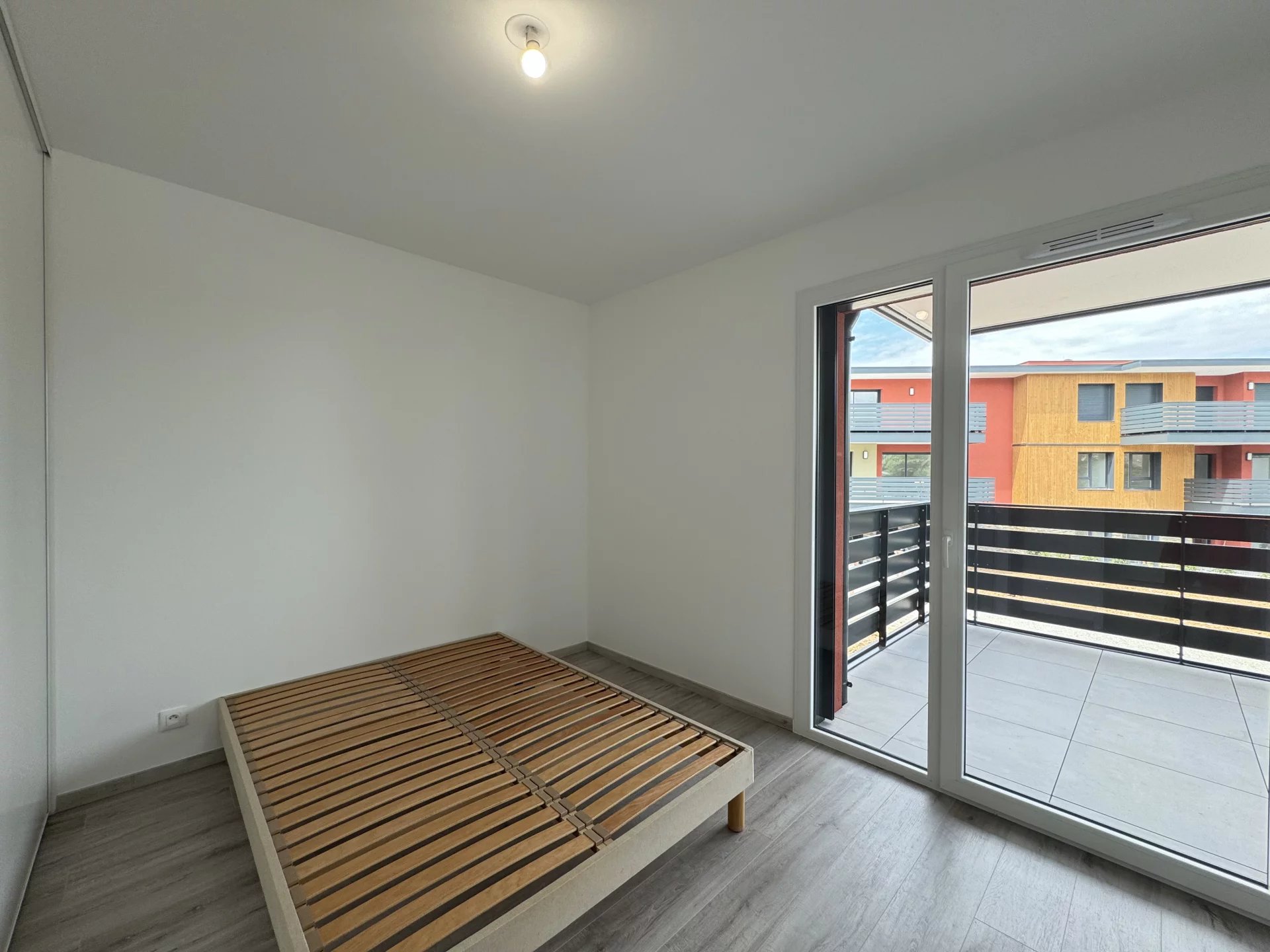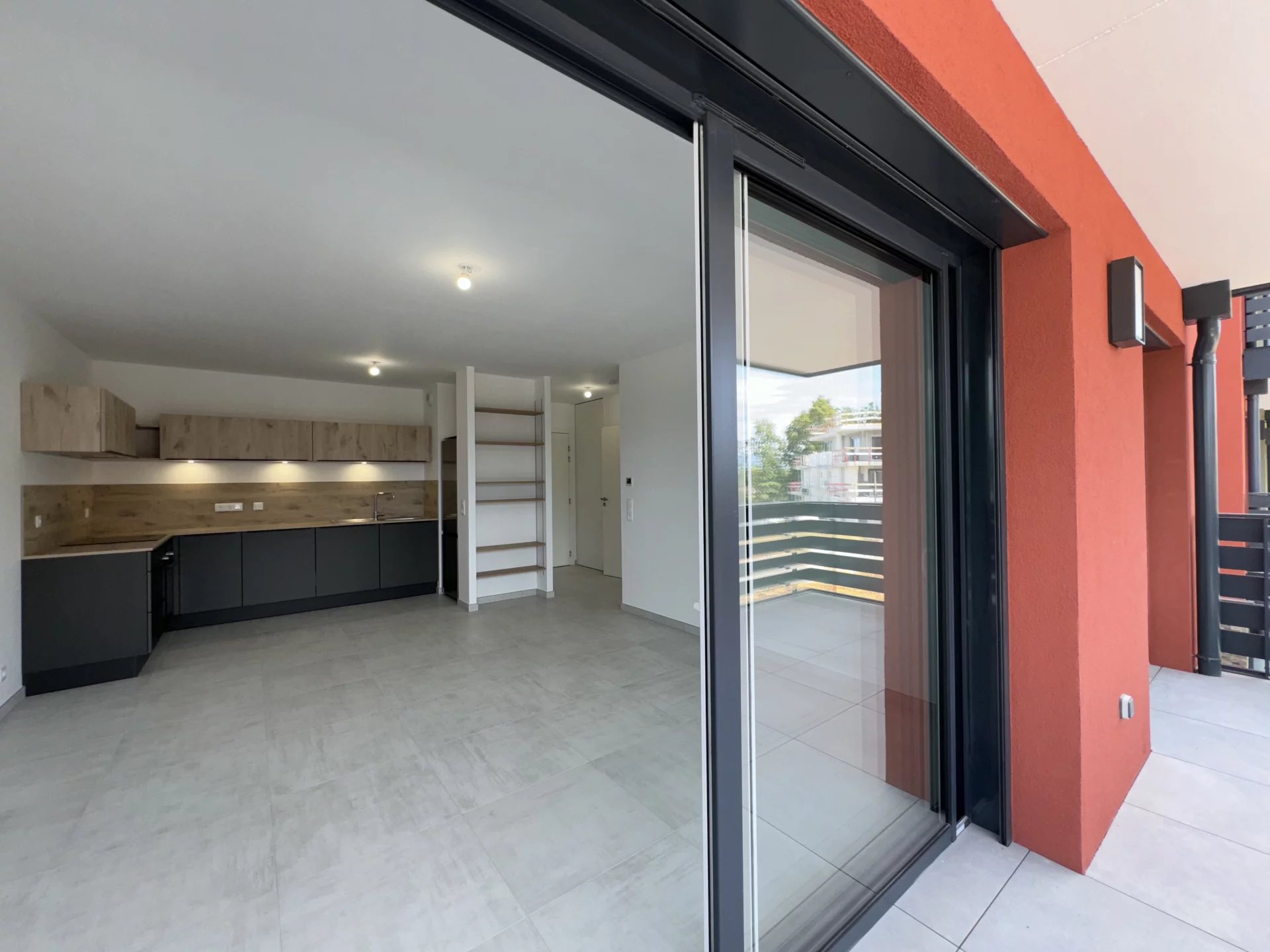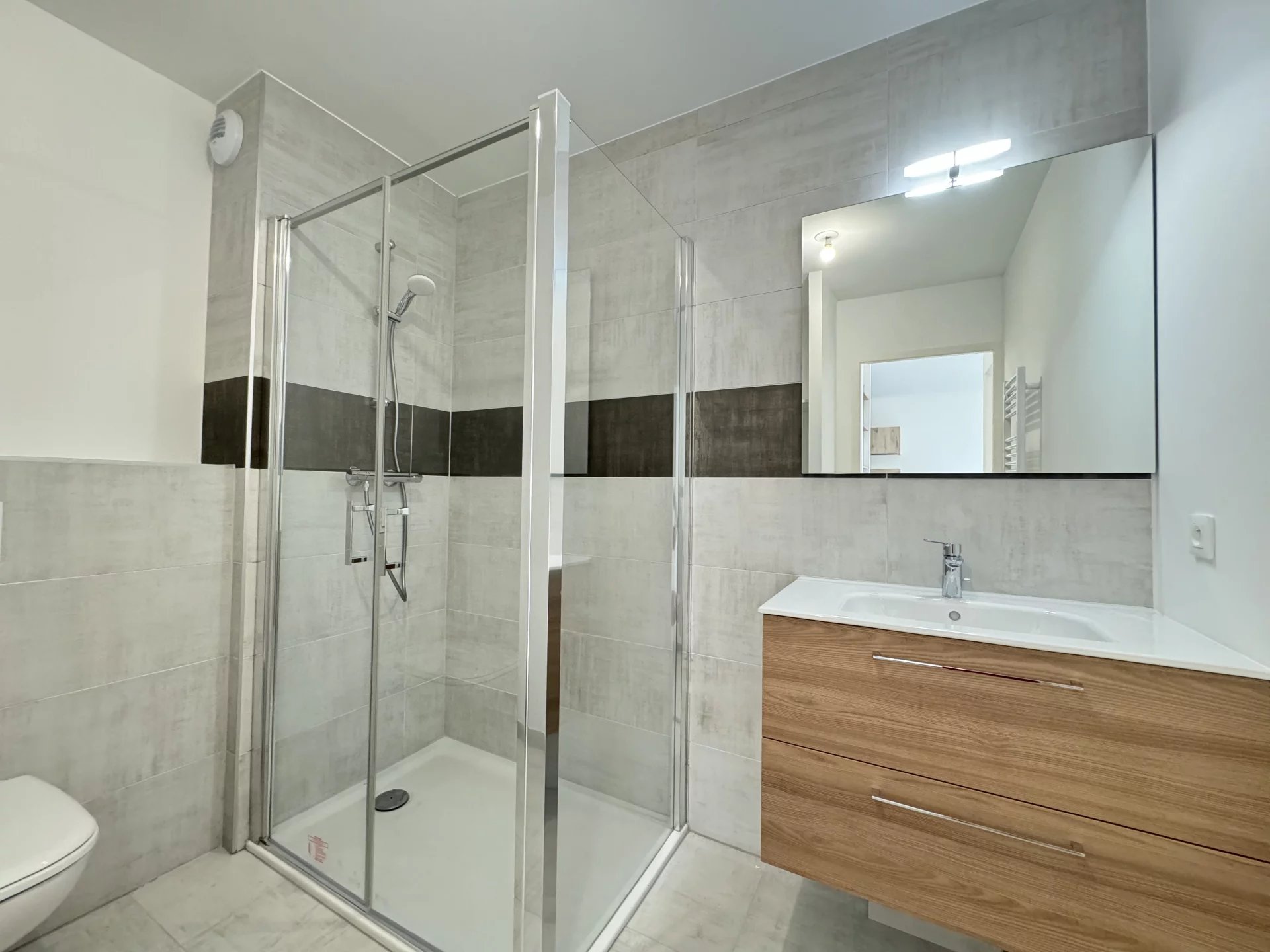 Located on the second floor of a new residence, it has a fully equipped kitchen (hob, extractor fan, oven, dishwasher and fridge-freezer) opening onto the living room with access to the terrace.