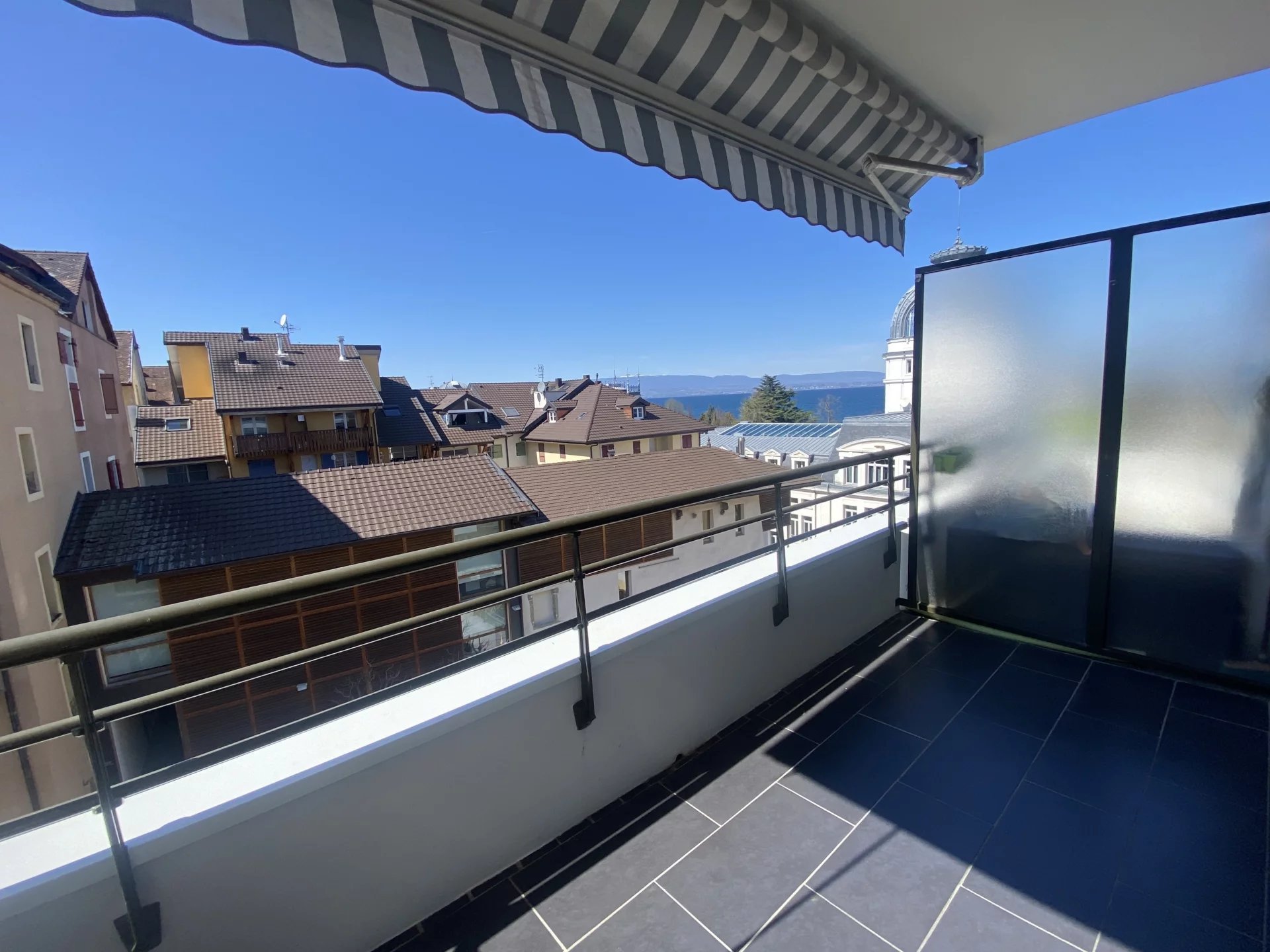 Bel appartement de 70 m² au 3ème étage d'une résidence située en plein coeur d'Evian. Une grande pièce de vie traversant d'est en ouest avec un balcon de chaque côté et une vue lac, une cuisine ouverte meublée et semi-équipée (plaque de cuisson, hotte, emplacement pour lave-vaisselle). Un espace nuit avec une salle de bains (emplacement lave-linge), deux chambres disposant chacune d'un placard intégré et d'un accès sur un balcon. Toilettes séparées avec lave-mains. Une cave et une place de stationnement couverte sécurisée.