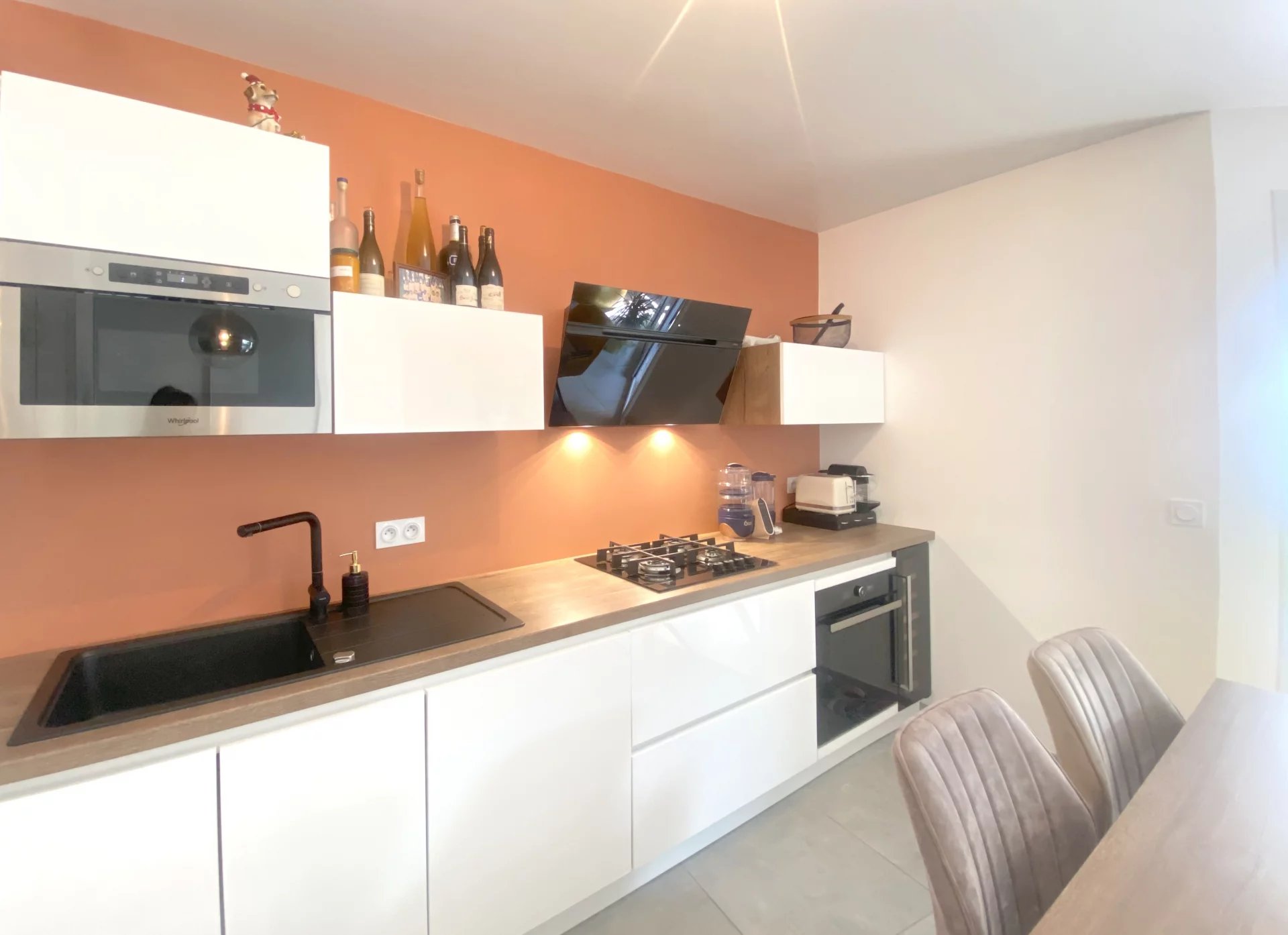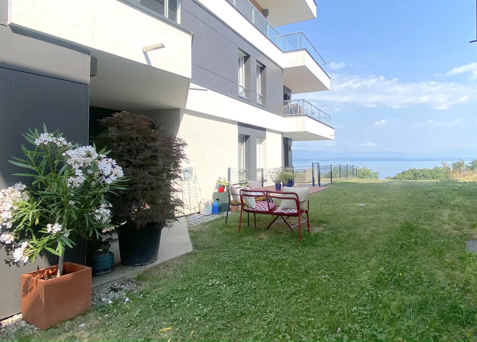 Beau T2 de 50 m² meublé avec jardin privatif et terrasse offrant une vue sur le lac. Une cuisine entièrement équipée (plaque gaz, hotte, four, micro-ondes, lave-vaisselle et réfrigérateur-congélateur) ouverte sur salon-séjour. Une chambre disposant d'un dressing mural, une salle d'eau avec douche et meuble double-vasque. Des toilettes séparées avec lave-mains et emplacement pour lave-linge. Un garage double.