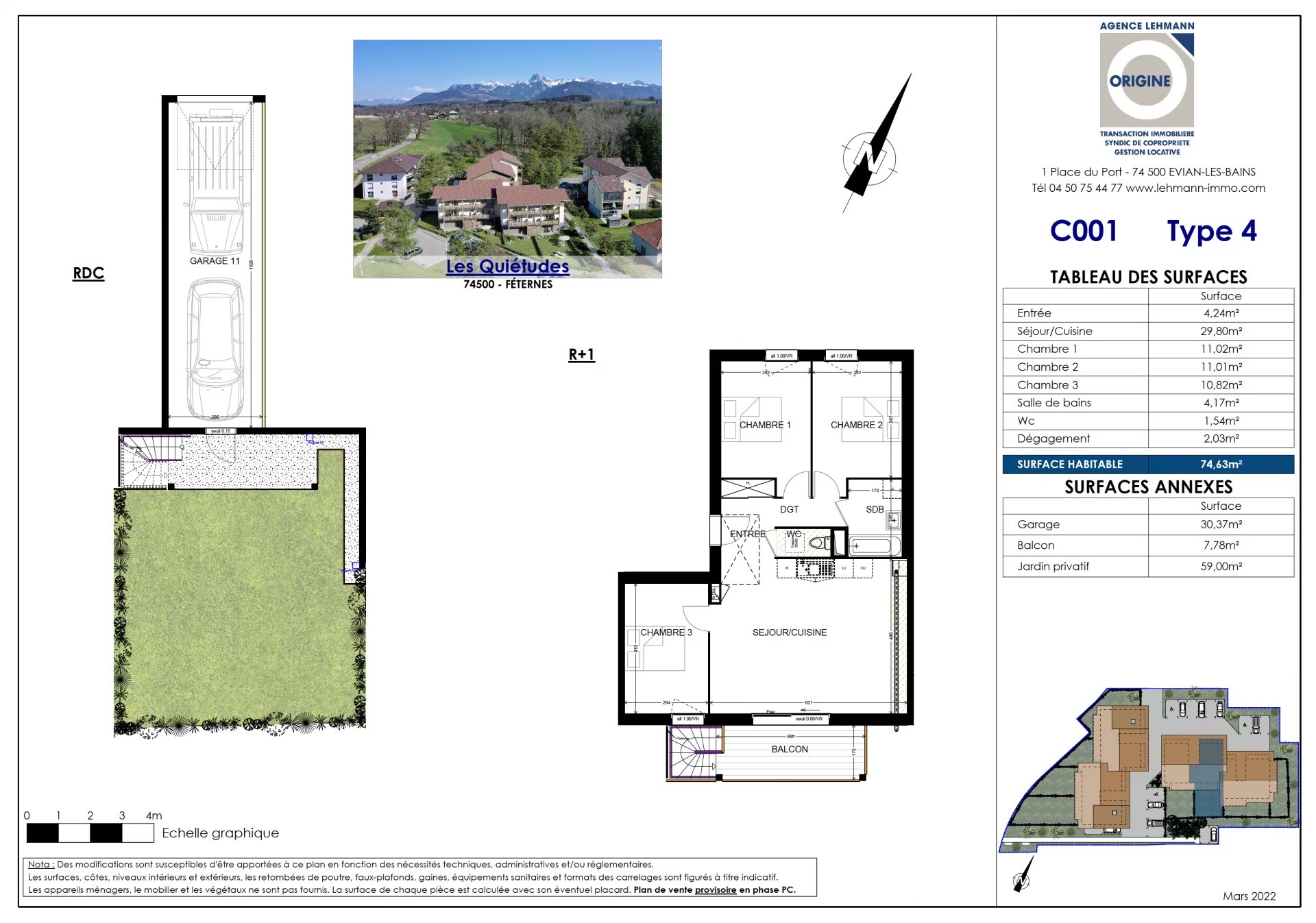 Il bénéficie d'une large pièce de vie de 29,80 m² exposé SUD donnant sur un balcon de 7,78 m² ayant un escalier permettant d'accéder au jardin privatif de 59 m².