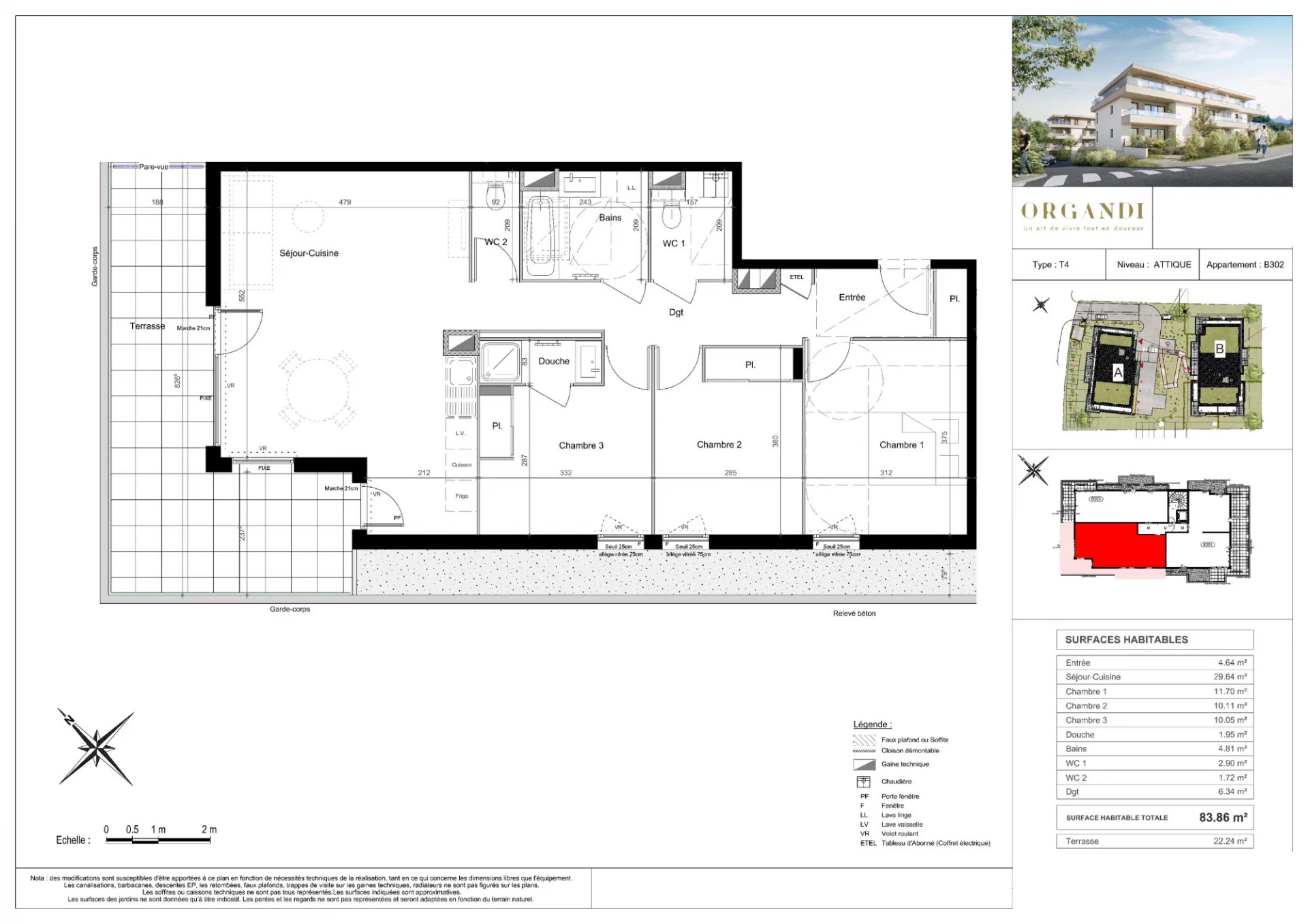 Découvrez cet appartement de type 4 attique de 83,86 m², orienté Sud Ouest avec accès à une terrasse de 23 m² dans une résidence neuve de style contemporain, conçue par le Cabinet d'architecte DARAGON-CHEYSSON.